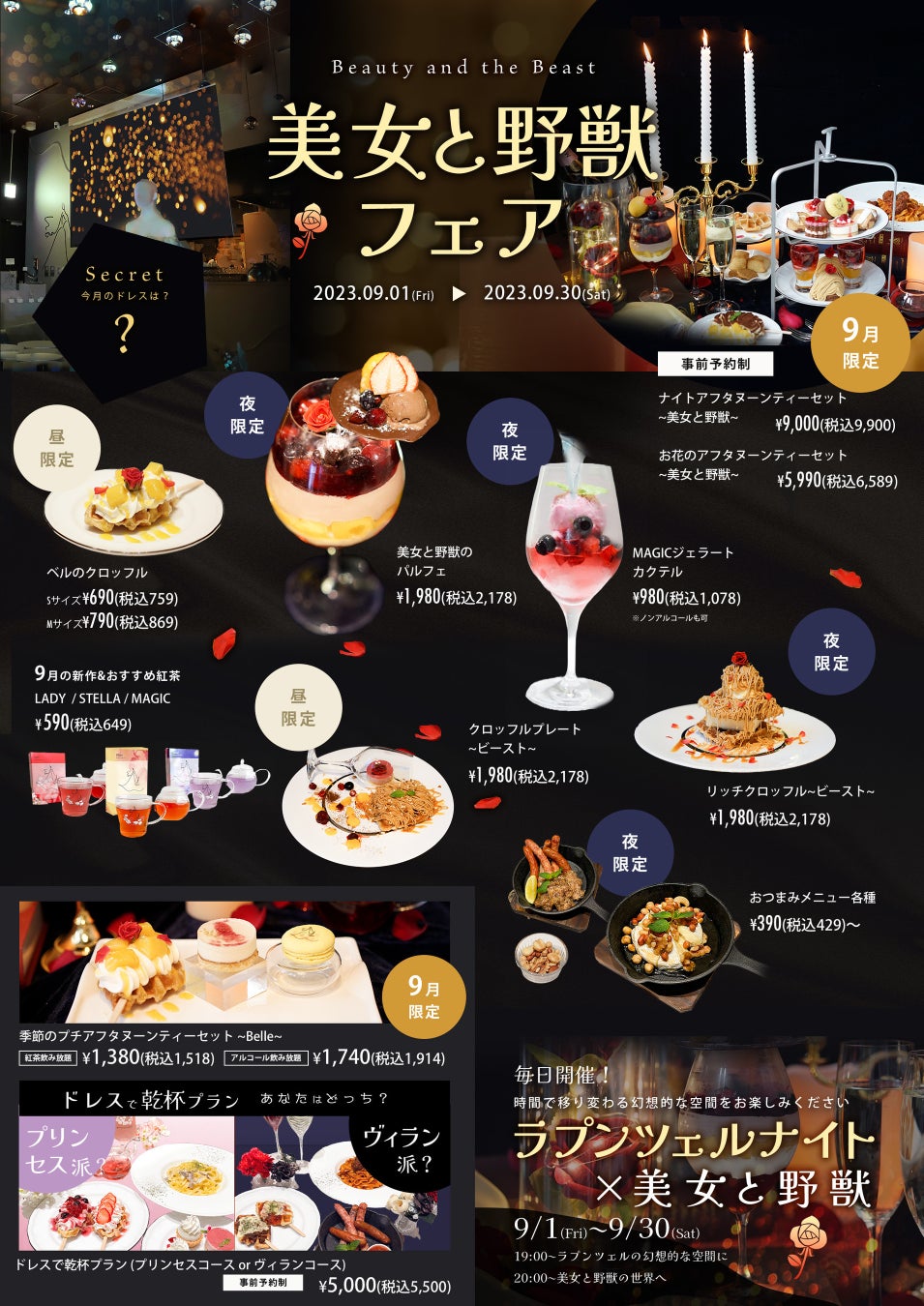 『DRESSYROOM&Tea』と『DRESSY CAFE』にて”美女と野獣フェア”が9/1よりスタート!