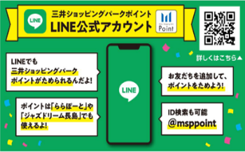 三井ショッピングパークポイントのLINE公式アカウントを友だち登録すると、会場で使用できる100円引きクーポンをプレゼントいたします。 ※詳しくは当日会場にてご案内いたします