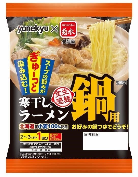 米久株式会社(静岡県沼津市)は、株式会社菊水(北海道江別市)とコラボした、そのままお好みの鍋に入れるだけで便利な「鍋用寒干しラーメン」を発売し、精肉売り場で鍋〆までをご提案いたします。