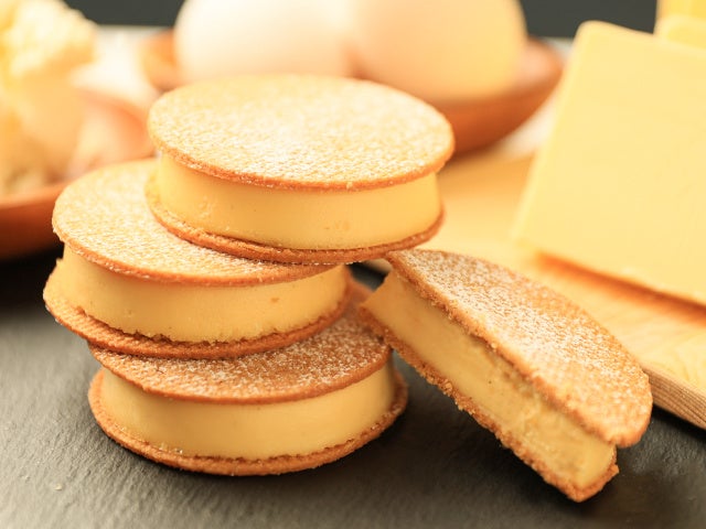 北海道産のクリームチーズ、小麦粉、卵を贅沢に使い、濃厚でなめらかなチーズクリームを香ばしく焼き上げたバタークッキーでサンドしました。