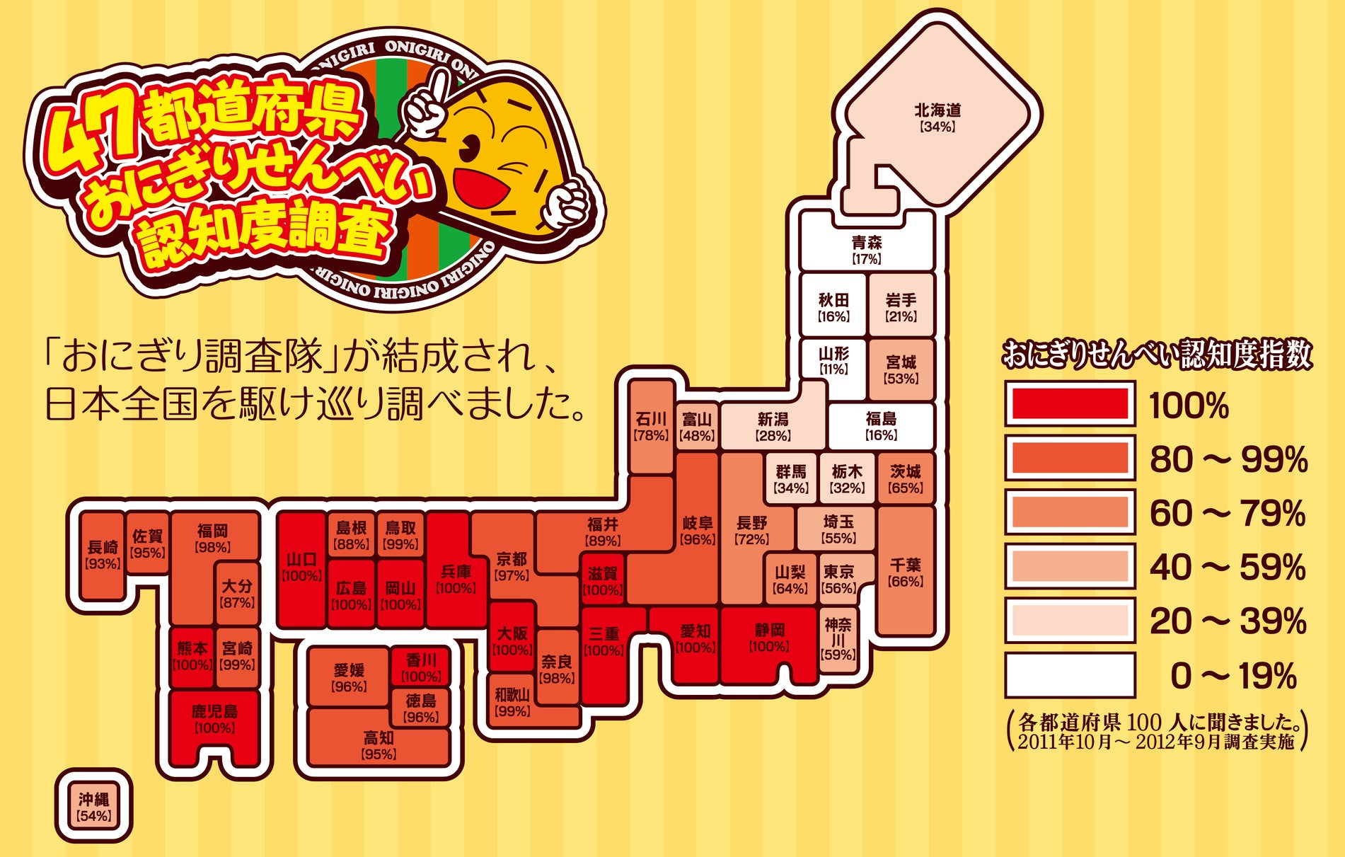 三重県伊勢市生まれの「おにぎりせんべい」は、関西(2府4県)では99%(*)と圧倒的な認知を誇っており子供の頃から身近にあるおやつとして親しんでいただいております。しかしその一方、関東(1都6県)での認知度は約52%(*)と、残念ながら西日本と東日本では認知度に大きな開きが…。東日本のお客様にもっと知っていただき、気軽に商品を手に取っていただけるよう営業活動に励んでおります。(*2011年10月~2012年9月自社調べ)