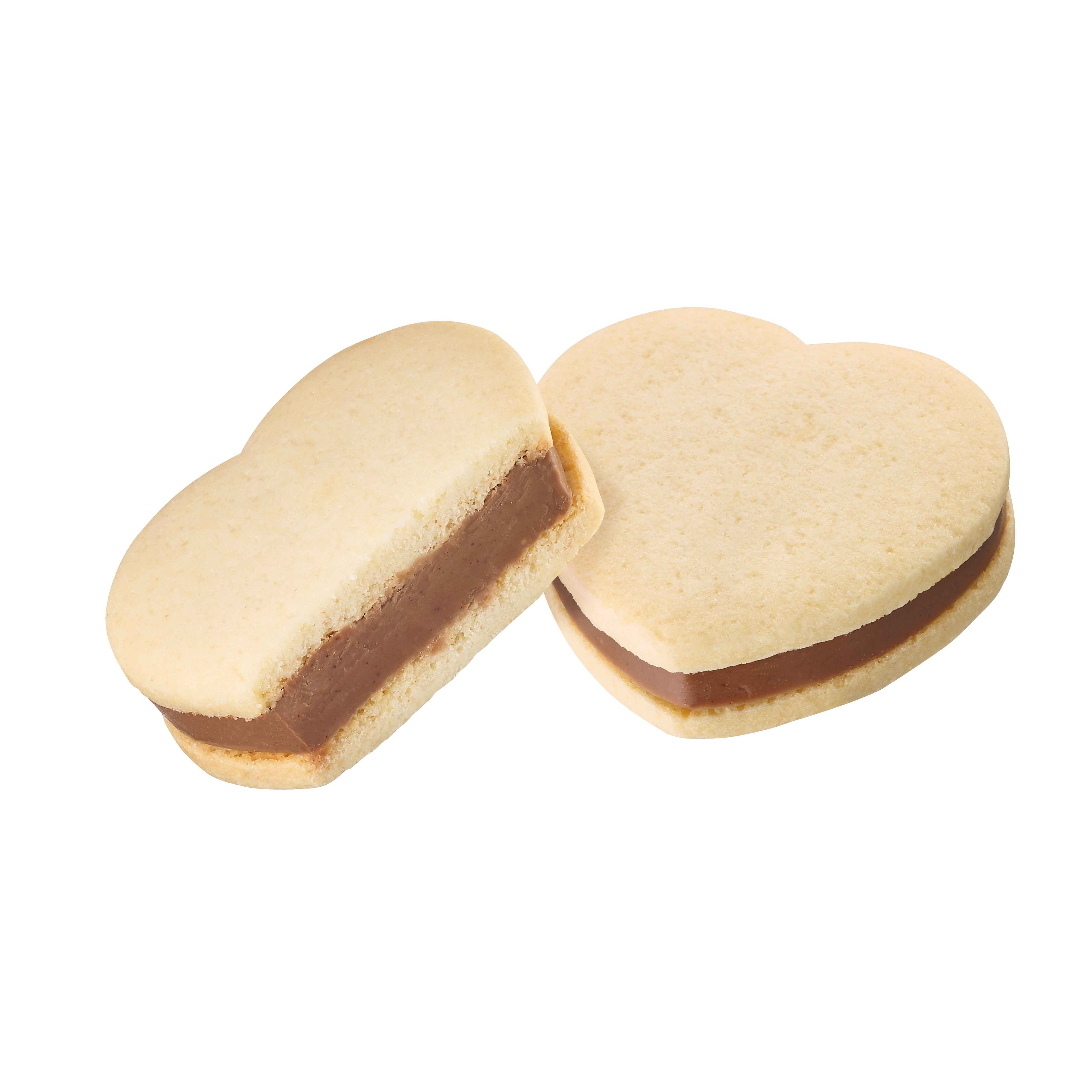 ペーストにした香り高いヘーゼルナッツプラリネを丁寧に練りこんだミルクチョコレートガナッシュを、ハートの形をしたサブレでサンドしました。ヘーゼルナッツプラリネの香ばしい風味が溶け込んだ、豊かな味わいです。