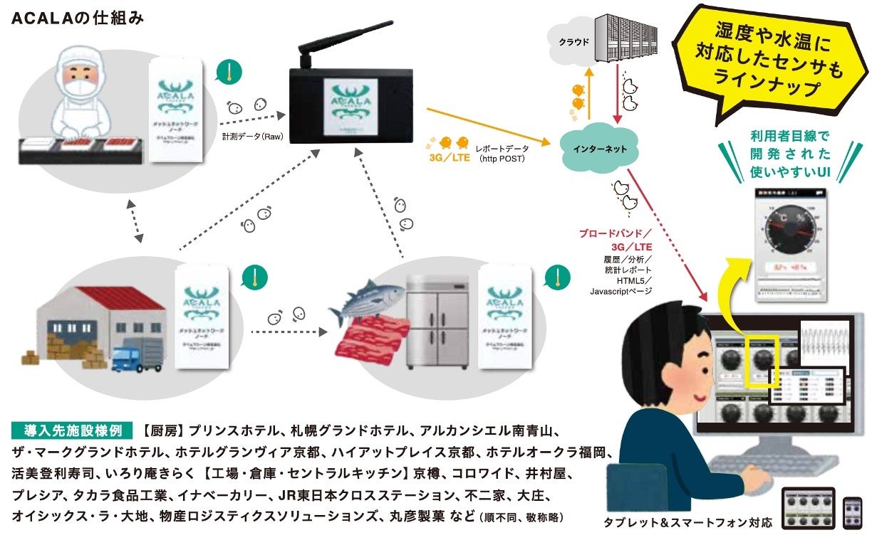 2021年6月に国際的な衛生管理基準であるHACCPが日本でも義務化され、食品温度管理の重要性が高まる中、慢性的に人手不足の食品製造業界において、「ACALA MESH」の導入は、現場の労務軽減、および、人手に寄らない(改ざん不可で)信頼度の高いデータ収集を可能とすることから、急速に導入事業者が拡大しています。