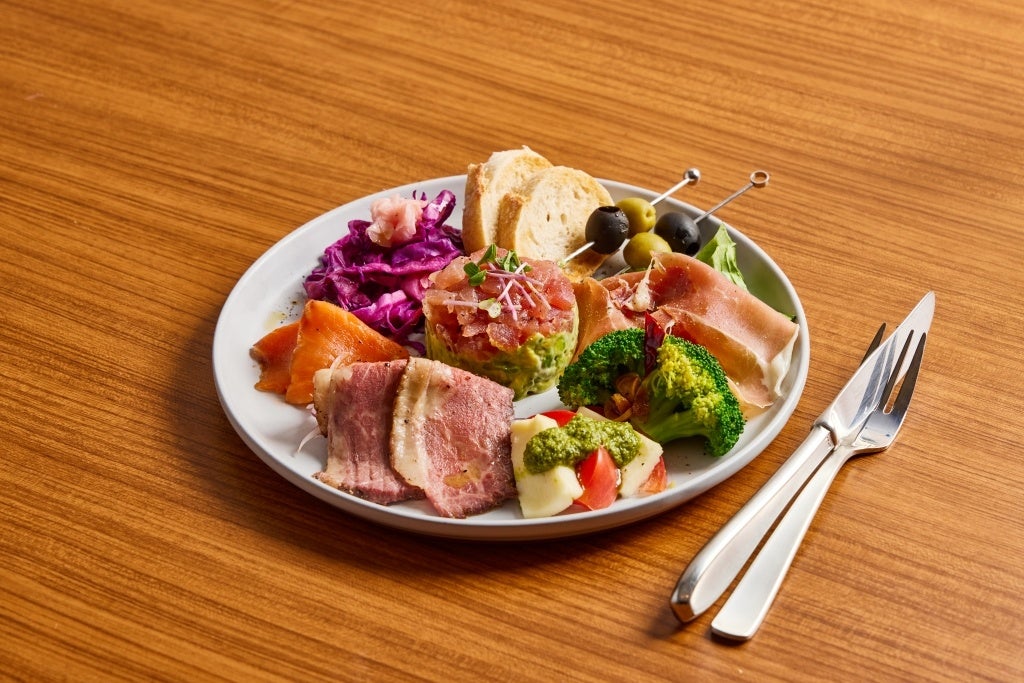 ・マグロとアボカドのタルタル ・赤キャベツと生姜のマリネ ・2色オリーブ ・スペイン産生ハムとルッコラ