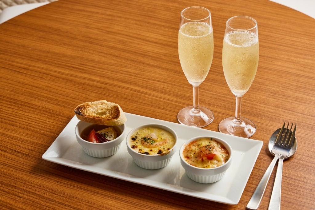 肉、魚、野菜と色取りも良い8種を盛り合わせたオードブル、3種の中からお好みで1種をお選びいただける温かなセイボリー、そして、3種の小さなスイーツたちが、特別なディナータイムを演出します。