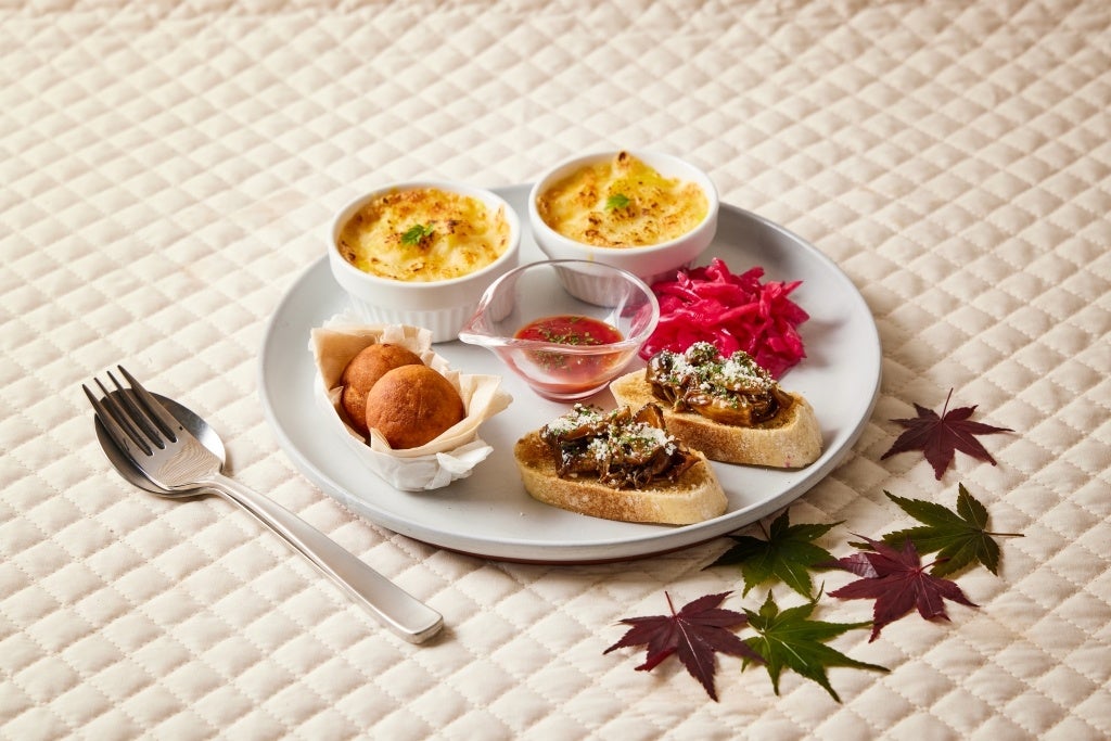 ・かぼちゃのグラタン ・さつまいもチーズボウル ・きのこミックスとバルサミコのブルスケッタ