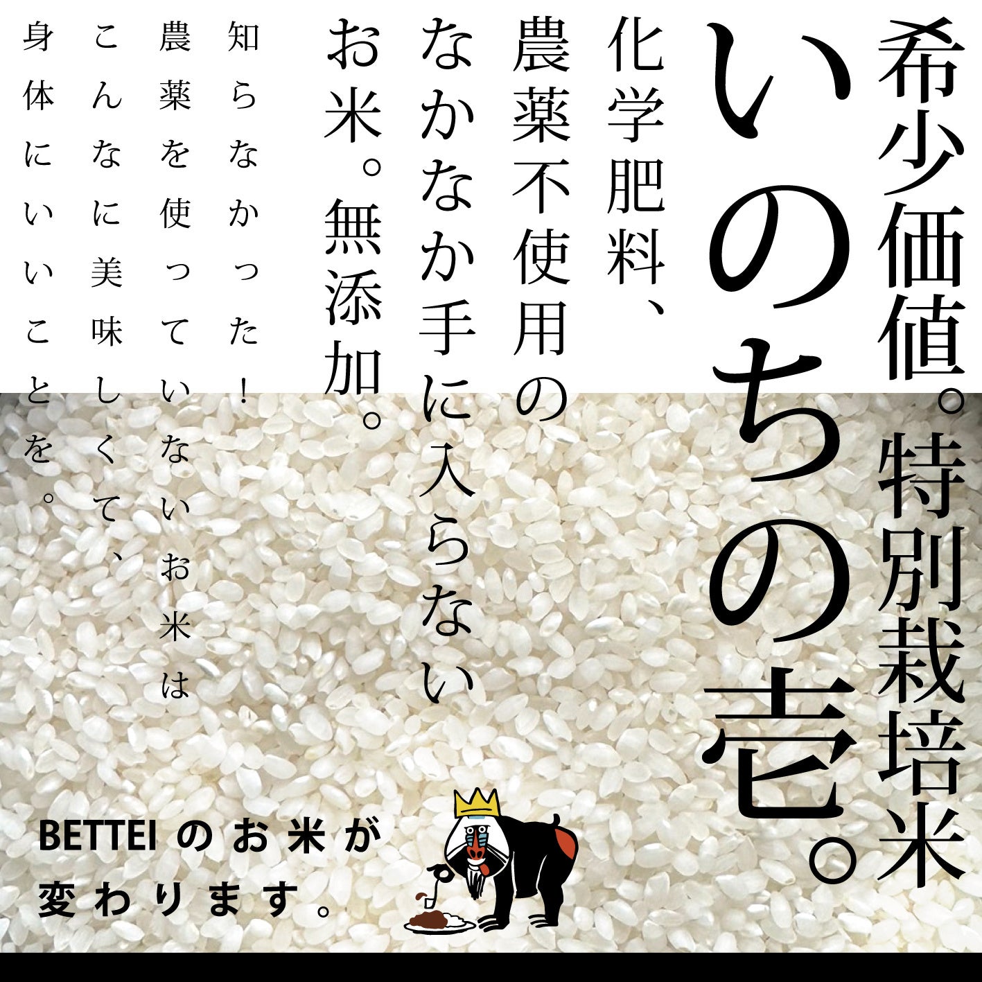 いろんなご縁がつながり、偶然な出逢いと共感が相まって、今回『特別栽培米いのちの壱』をBETTEIのお米に使わせてもらえることになりました。