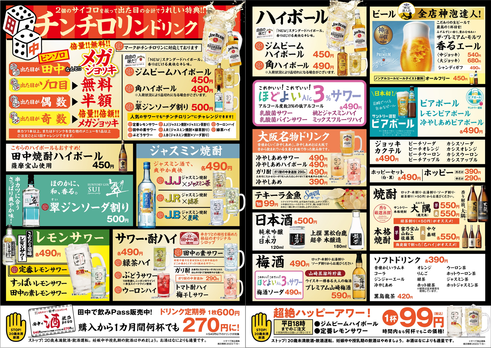 ※「田中で飲みパス」「田中で飲みパスゴールド」の価格でも対象です。