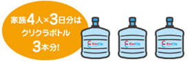 クリクラ顧客(直営配送エリア限定)で、備えて安心プレゼントキャンペーン期間中に、一度の注文でボトルを4本購入すると、安心米(1袋)+備蓄チェックリストをもれなくプレゼント!
