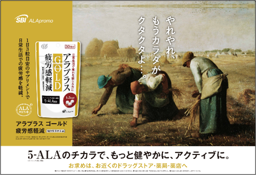 ※左:アラプラス 糖ダウン ドリンク×叫び(オスロ国立美術館/画家 エドヴァルド・ムンク)、中央:アラプラス 糖ダウン アラシア×真珠の耳飾りの少女(マウリッツハイス美術館/画家 ヨハネス・フェルメール)、右:アラプラス ゴールド 疲労感軽減×落穂拾い(オルセー美術館/画家 ジャン=フランソワ・ミレー)