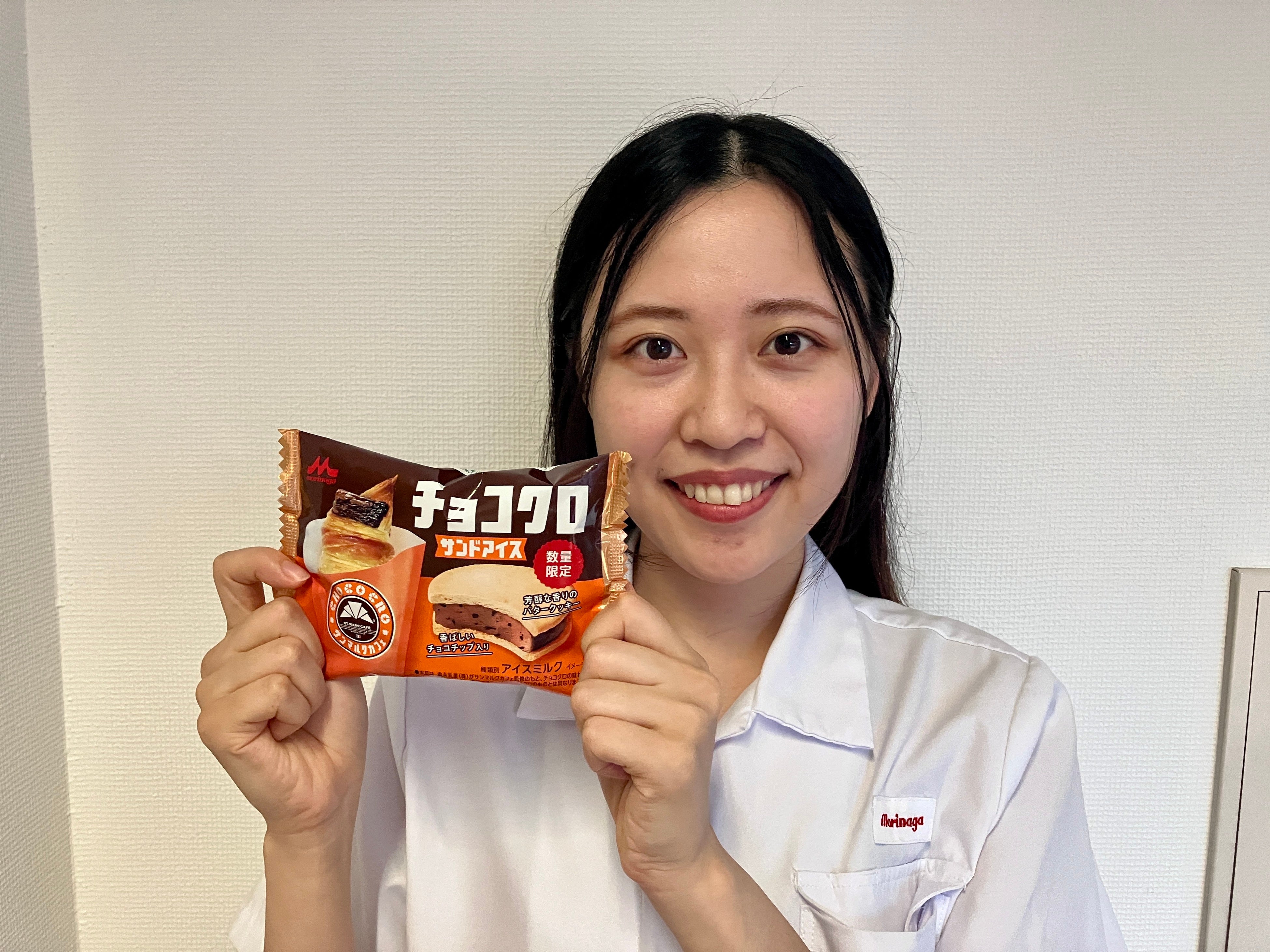 このこだわりとおいしさを表現したサンドアイスを、たくさんの方に手に取っていただけると嬉しいです!あわせて「チョコクロ」も一緒に召し上がっていただけると嬉しいです。