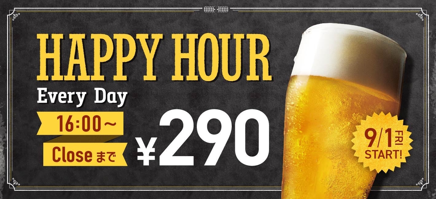 ・商品名・価格(税込):新!ハッピーアワー 16時~営業終了まで ビール1杯290円