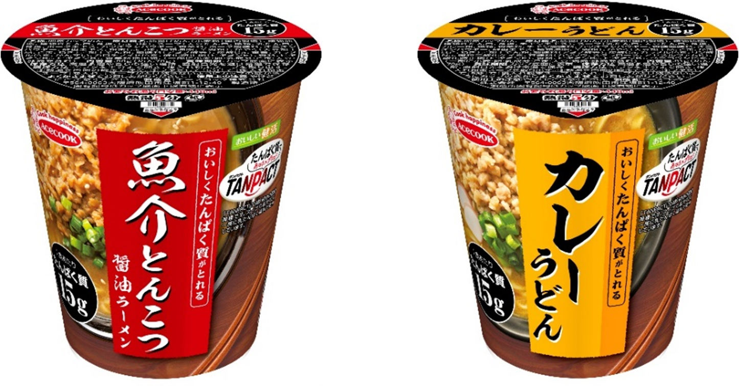 ① 一杯でおいしく、手軽に“たんぱく質15g”がとれるカップめん「おいしくたんぱく質がとれる」シリーズが新登場!