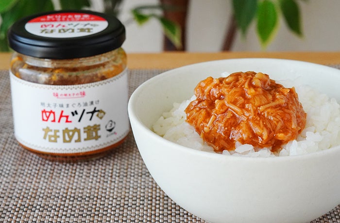 ご飯のお供として人気の「なめ茸」に、明太子仕立てのツナ油漬けをたっぷり合わせた商品。