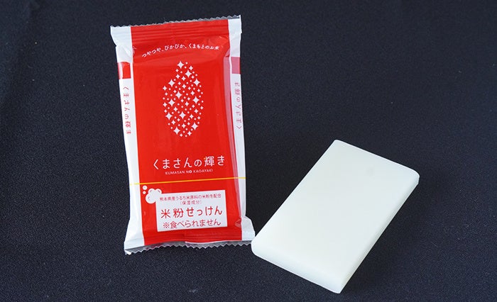 毎日先着100名様!ご飯のお供食べ比べをご利用のお客様には「くまさんの輝き」の米粉で作られた米粉石鹸を1個プレゼント!!