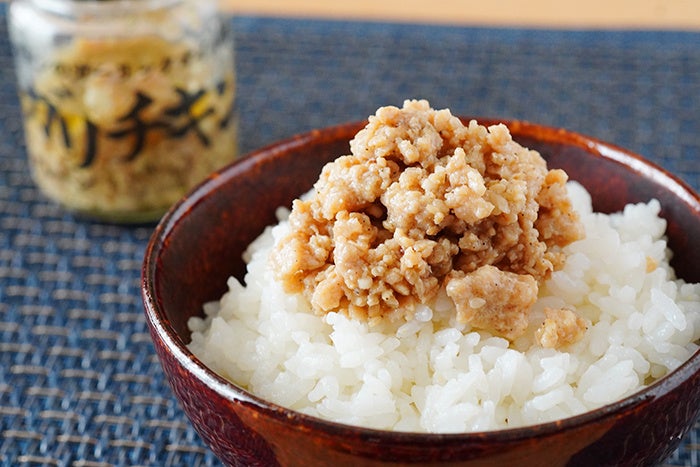厳選した国産鶏むね肉をガーリックオイル漬にし、フライドオニオン、炒りゴマ、ブラックペッパーなどを加えています。 鶏むね肉だが、がっつり食べ応えのある味と食感です。