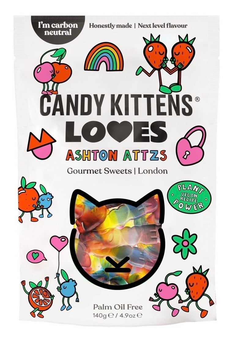 「キャンディキトン」は、英国のリアリティ番組「Made in Chelsea メイド・イン・チェルシー」のスターであるジェイミー・ラングと共同創設者であるエド・ウィリアムズが2012年にロンドンで設立したグルメなグミブランド。動物のゼラチンやパーム油などを使用しない、ナチュラルで環境に優しい素材を使った大人向けのグミを展開しています。ブランドのロゴにも使用されているチャーミングなネコの形のグミが人気を博し、現在ではイギリスの高級百貨店「セルフリッジズ」や王室御用達の高級スーパー「ウェイトローズ」をはじめ、アメリカやオーストラリアなど世界15ヵ国以上でも販売されるブランドへ成長しました。