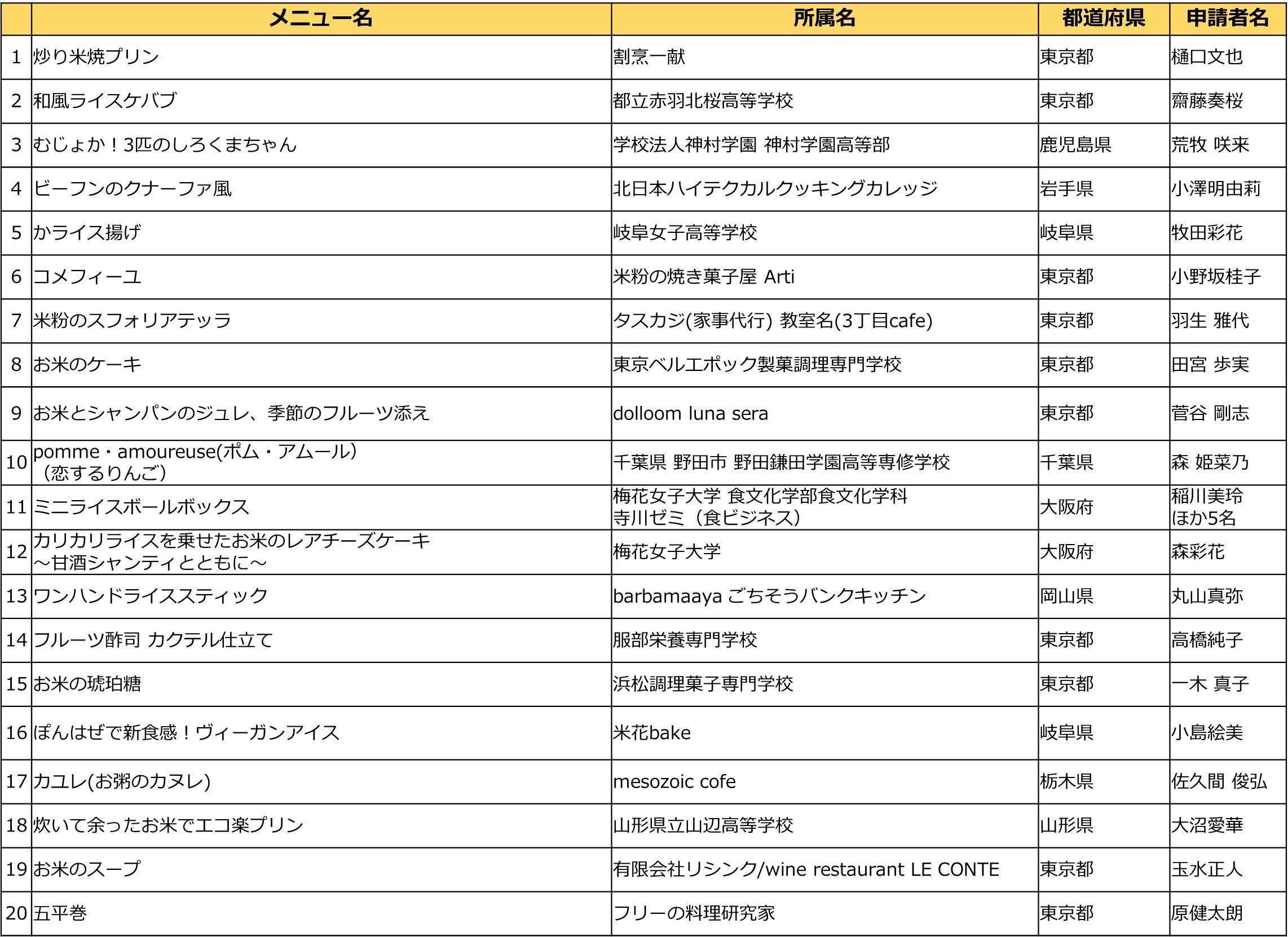 米を使用したメニューアイデアであること(米の使い方は自由)