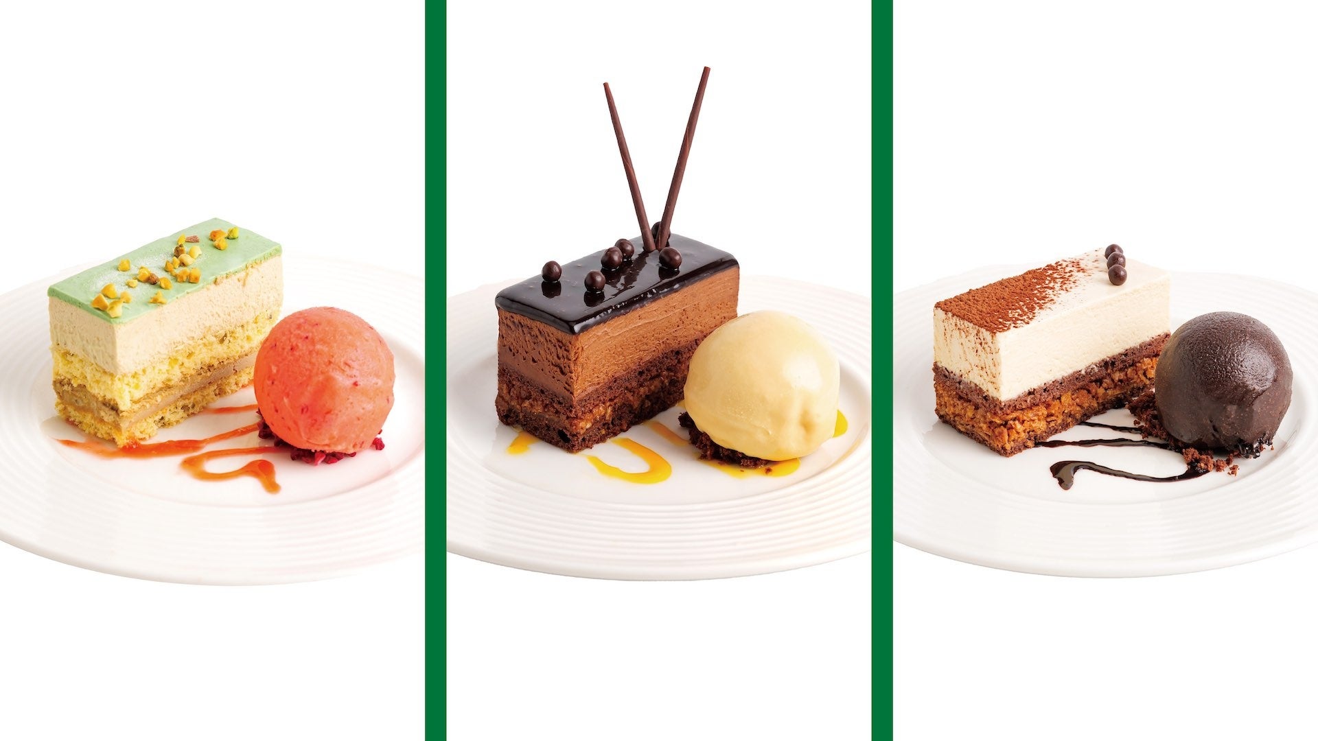 「ガトーピスタチオ / ガトーショコラ / アーモンドショコラ」の3種類のケーキと選べるジェラート(1フレーバー)のセットメニュー
