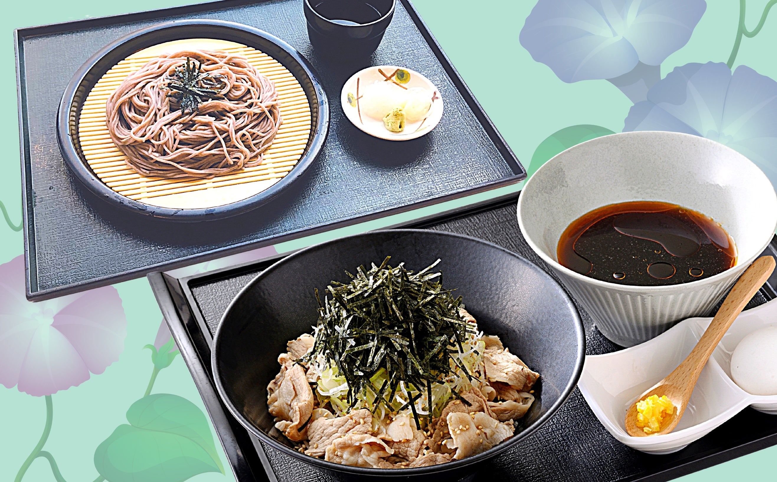 シンプルに味わう『ざるそば 590円』と、すっきりした柚子の風味がアクセントの『肉ラー油つけそば 790円』をご用意しております。