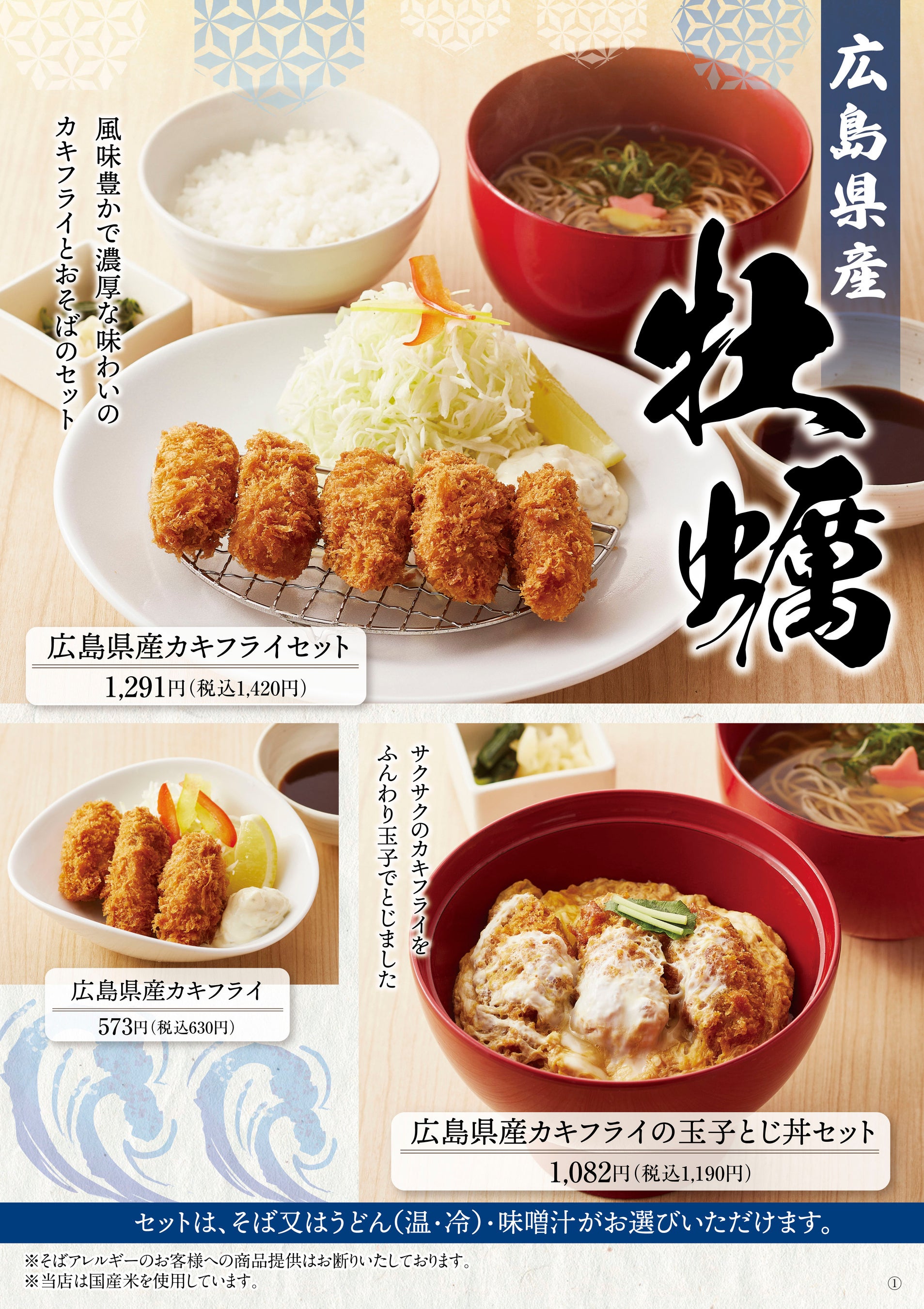 ・広島県産カキフライセット(そば又はうどん) 税込1,420円