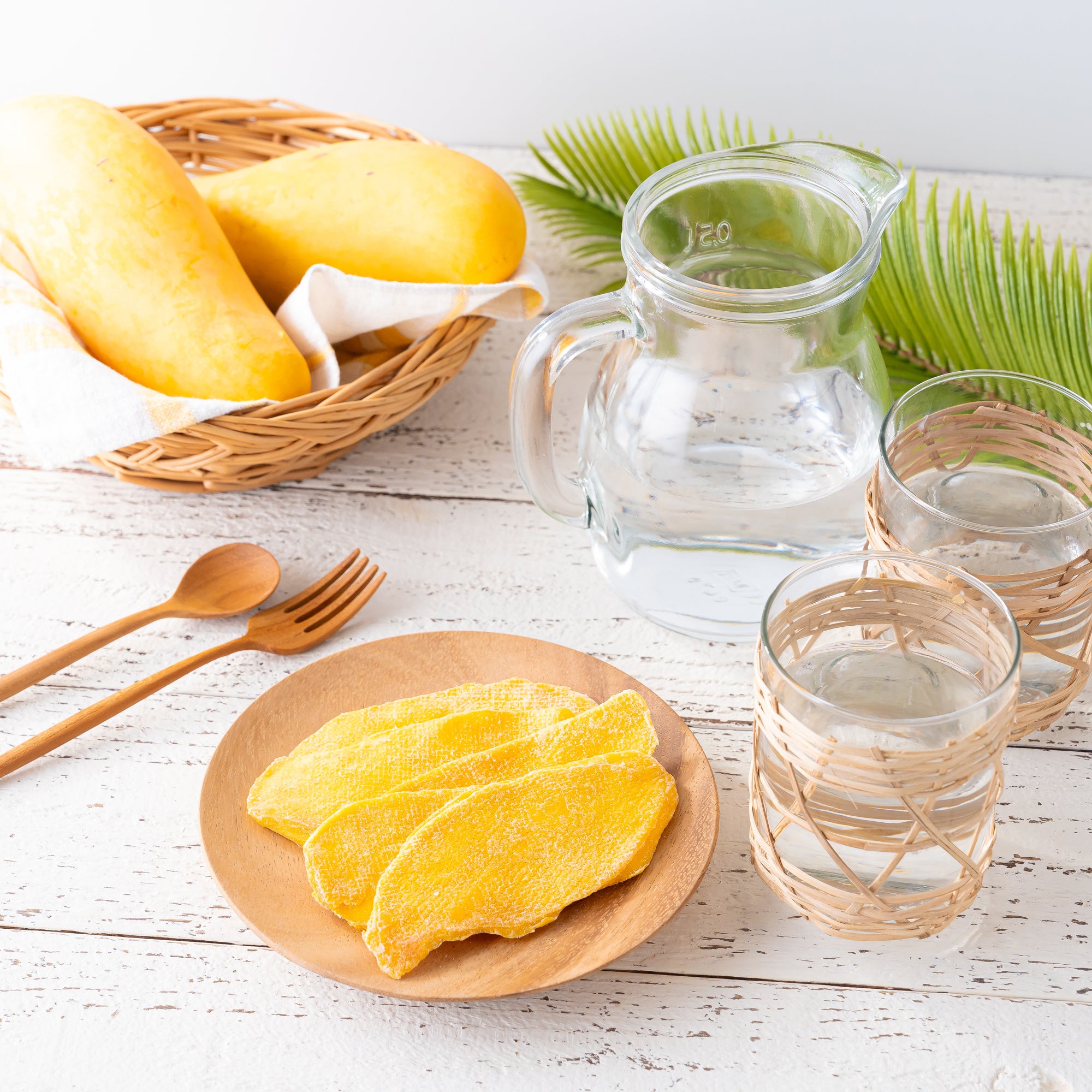 本製品の原料であるカンボジア産のkaew(ギャウ)種は、すっきりとした、酸味と甘みのバランスが良いことが特長です。カンボジア国内で鮮度が良い状態のマンゴーをドライフルーツに加工するため、マンゴー本来のおいしさが引き立ちます。食べやすい厚みにスライスしているため、子どもや女性にも食べやすく仕上げています。