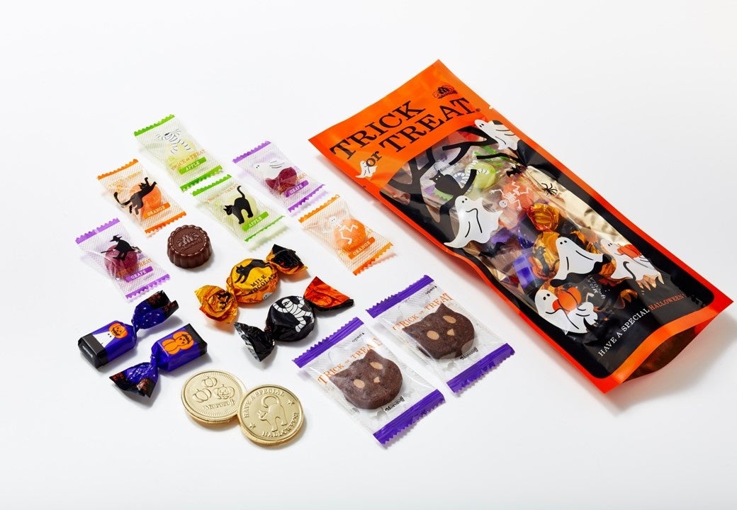 チョコレートやキャンディ、チョコレートクッキー、バタークッキーなどをそれぞれ詰め合わせました。ハロウィーンキャラクターデザインの個包装や、かわいい黒猫型やかぼちゃ型のクッキーが、ハロウィーンを一層盛り上げます。どれでも3袋で1,080円!ちょっとしたプレゼントにもぴったりです。