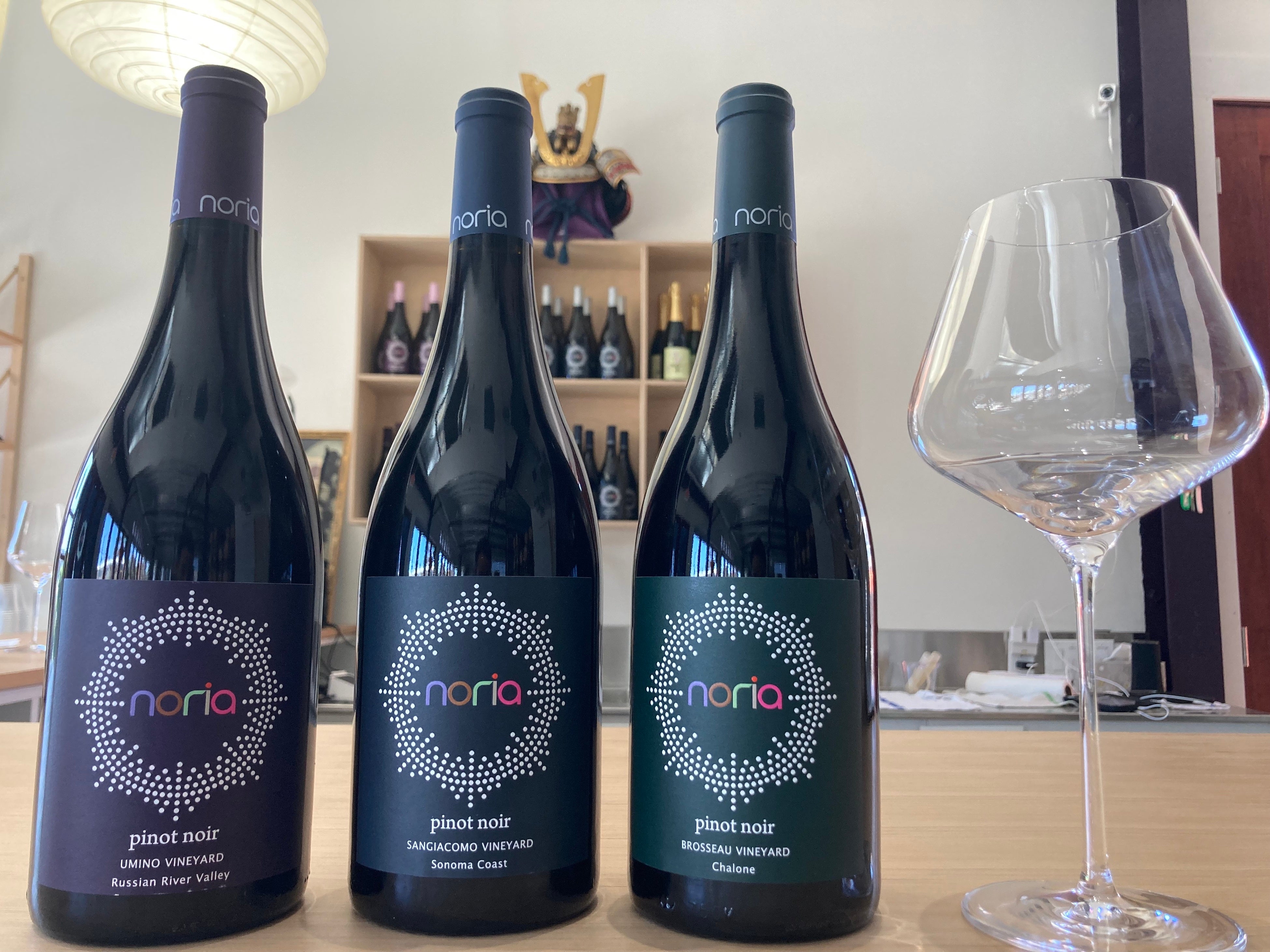 NORIAワインは、ナパやソノマで長年ワイン作りに携わってきたワインメーカーの中村倫久が厳選したサンフランシスコ郊外のラシアンリヴァー・ヴァレー、ソノマ・コースト、シャローン地区などにある4つのブドウ農家から仕入れたブドウで作られています。現在、ピノ・ノアール3種類、シャルドネ、ソーヴィニオン・ブラン、スパークリングワインなど6種類のワインを製造しており、それぞれが和食に合うカリフォルニア・ワインとして、⽇本でも(株)中川ワインを通じて店舗やレストランなどで取り扱われています。中でも、シャルドネは、全日空のファーストクラスや、賓客をもてなすサンフランシスコ領事館にも提供された実績があります。また、亡くなった中村勘三郎さんの愛飲されたワインとしても知られています。