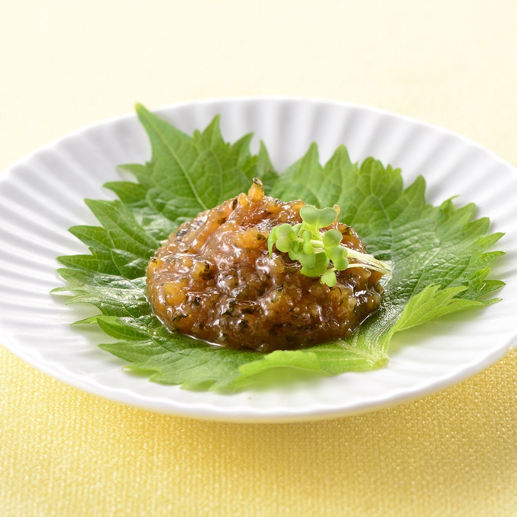 国産の大葉(青しそ)を新潟の蔵元で越後米・有機栽培大豆・赤穂の天塩を使って丹誠込めて仕込んだ越後味噌と砂糖で丹念に職人が手作業で練り込み甘目の味噌に仕上ました。シンプルだからこそ、職人の技が光る肴味噌です。炊き立てのご飯やおにぎりの具としておすすめです。