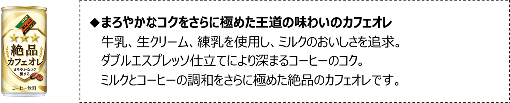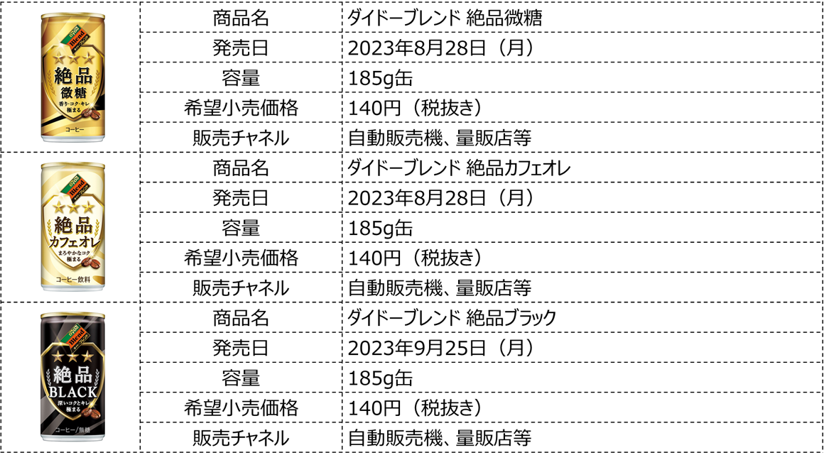 この度発売するのは、香り・コク・キレをさらに極めた「ダイドーブレンド 絶品微糖」、ミルクとコーヒーの調和をさらに極めた「ダイドーブレンド 絶品カフェオレ」、深いコクとキレを極めた「ダイドーブレンド 絶品ブラック」の3品です。