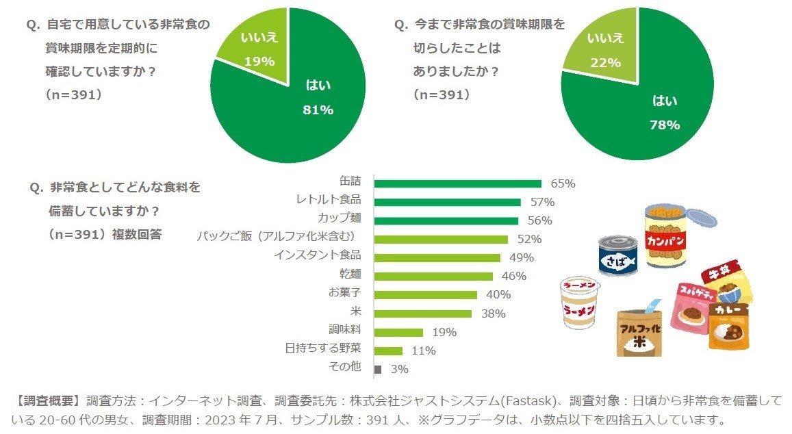 ✔ 今まで非常食の賞味期限を切らしたことがある:78%
