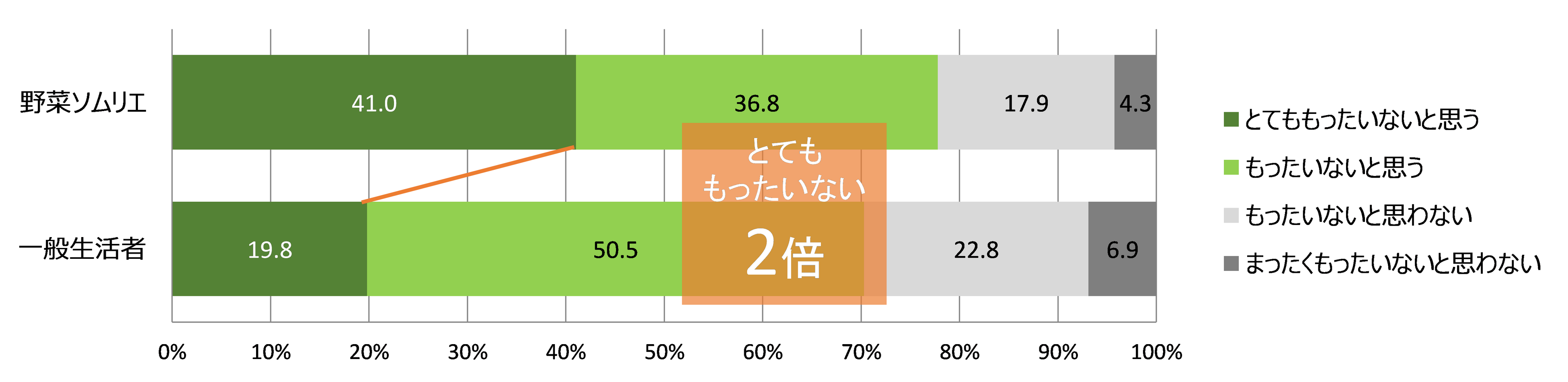 「とてももったいない」と回答したのは一般生活者19.8%。野菜ソムリエは41.0%。