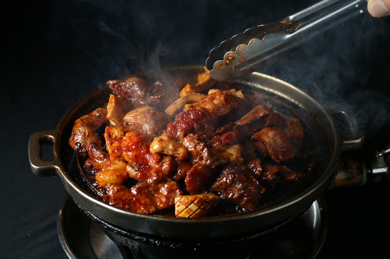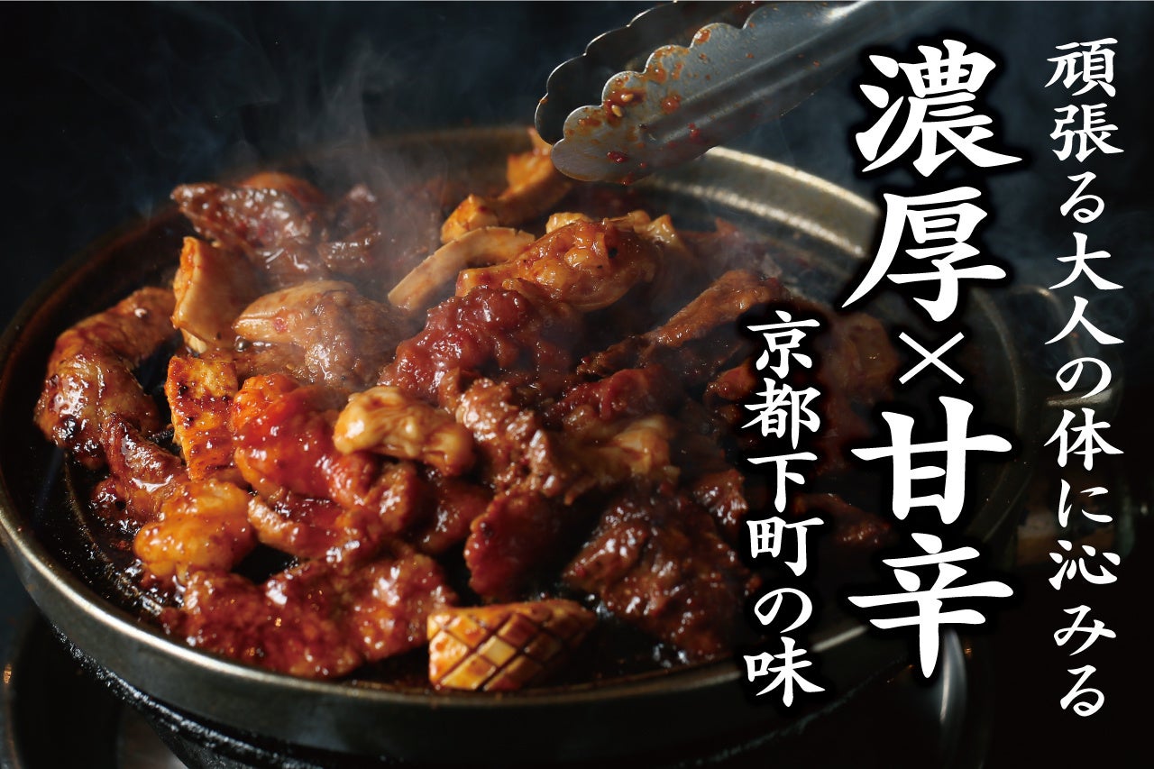 京都で創業し50年以上愛される焼肉店[焼肉はやし]で名物のまぜ焼き。赤身肉とホルモンをバランスよくミックスし、特製の甘辛濃厚タレに漬け込んだその味は多くの人を魅了し、この味を求めて多くのビジネスマンがパワーチャージに訪れます。ビールにもごはんにも合い、パワーみなぎるやみつき必至の濃厚焼肉です。