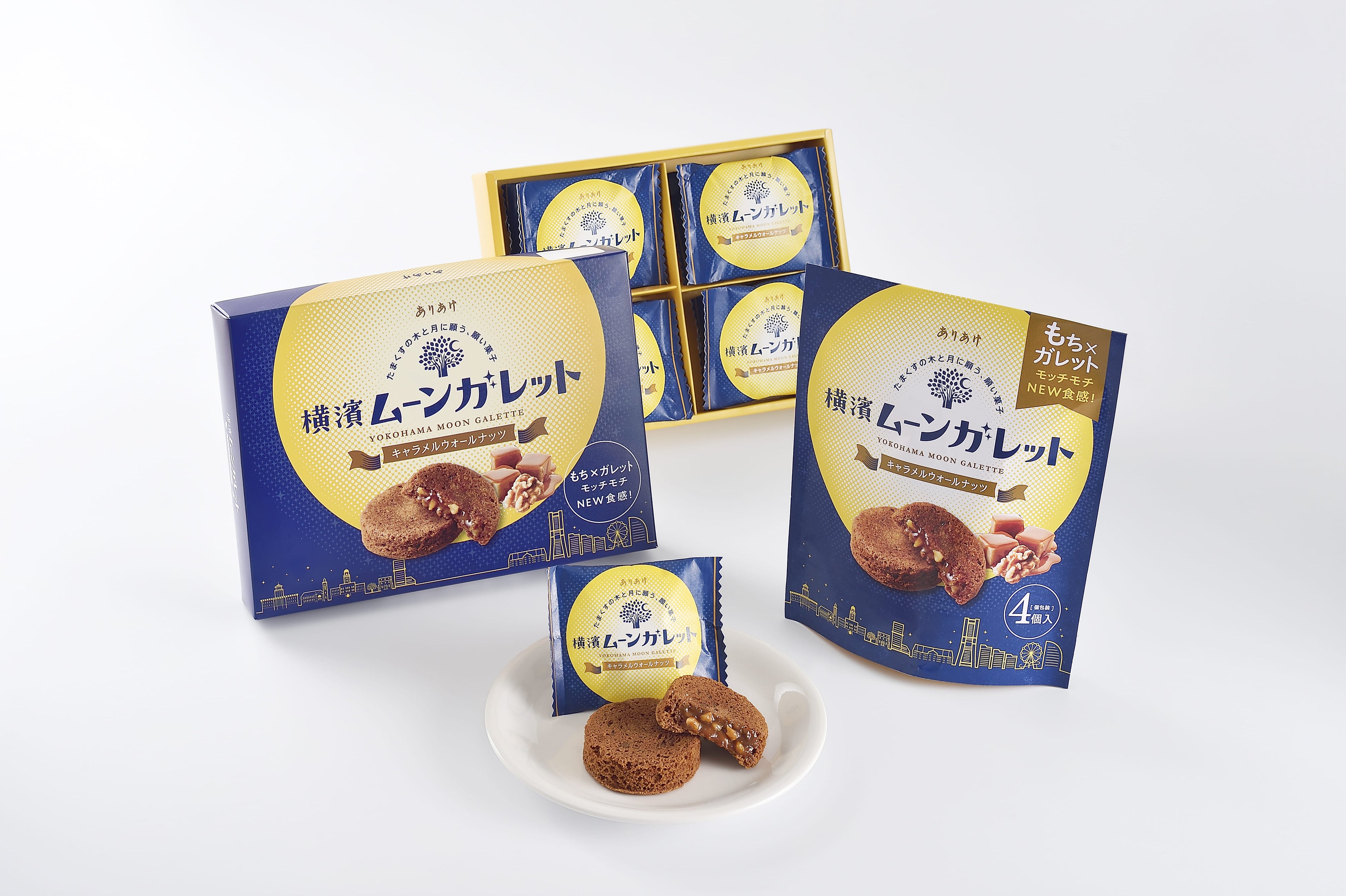 株式会社ありあけ(横浜市中区日本大通36、代表取締役社長堀越隆宏)は、ありあけのハーバーが誕生して来年2024年に70周年を迎えられることに感謝し、『横濱ムーンガレット キャラメルウォールナッツ』を2023年9月1日(金)よりありあけ直営店・量販店・駅売店・ありあけオンラインショップなどで販売を開始いたします。日本伝統のハレの食べもの『餅』と西洋の『ガレット』を織り交ぜて2020年に生まれた「横濱ムーンガレット」を、2023年8月8日「ありあけハーバーの日」※からスタートしている周年感謝企画の一環として、よりおいしく愛される商品になるよう、くるみ入りキャラメル味の餅餡をつつんだもっちりガレットにリニューアルし、新発売いたします。