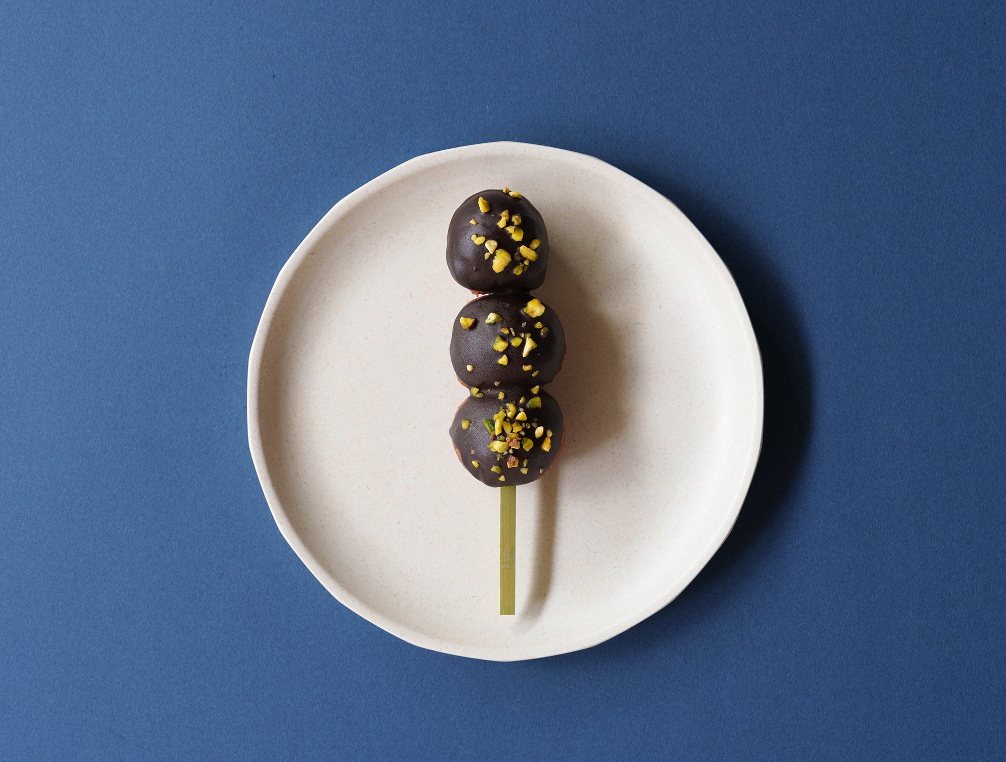 カカオの風味豊かなチョコレートをディップし、人気の高いピスタチオをトッピング。