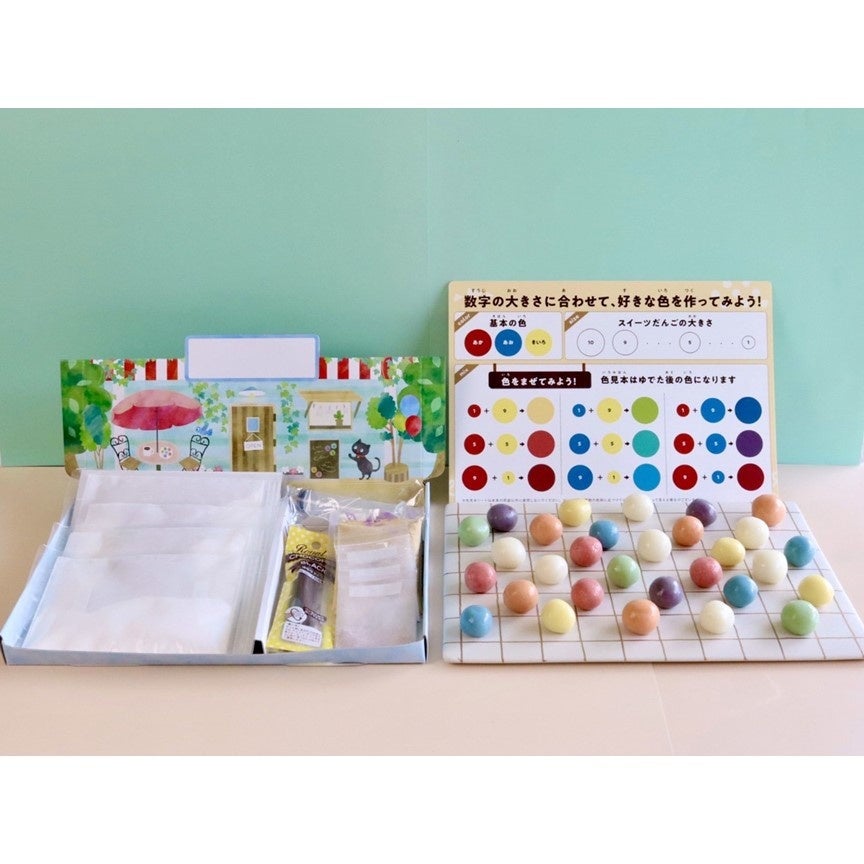 新商品を使用して色の三原色を🟥赤🟦青🟨黄色の色粉を混ぜ合わせ、手でこねながら好きな色のスイーツだんごを作りましょう!