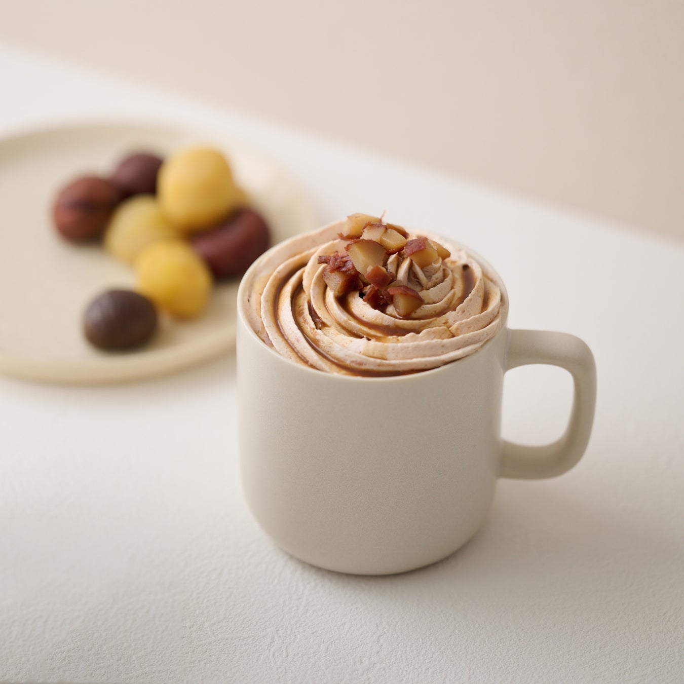 オリジナルブレンド豆を使用した特製ラテに、マロンホイップをたっぷりと絞った秋限定ドリンク。