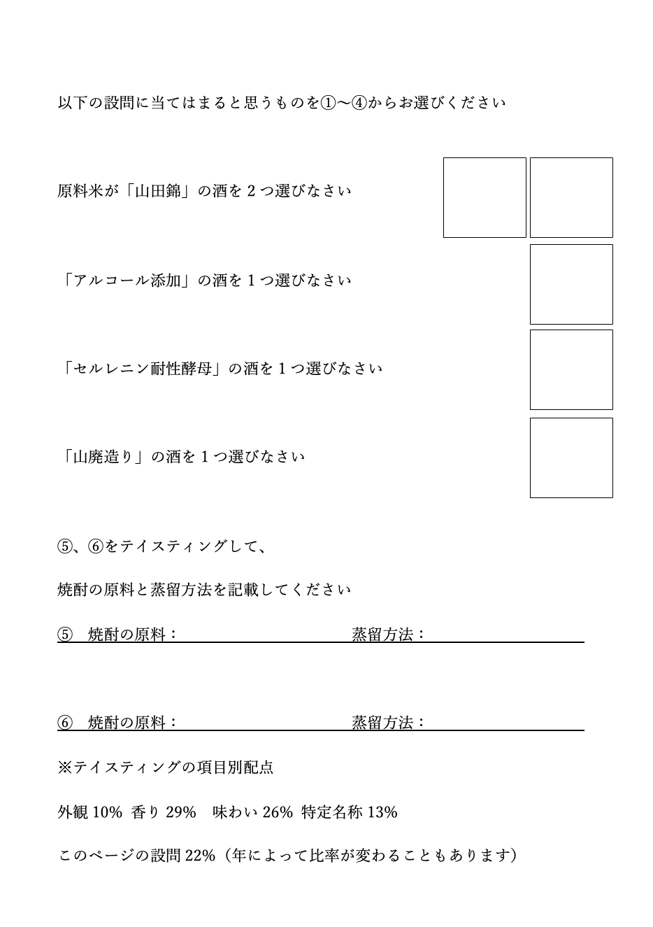 複数の日本酒/焼酎のブラインドテイスティングがあるので試験対策にはたくさんのお酒を購入する必要があり、その費用の負担は大きいです。