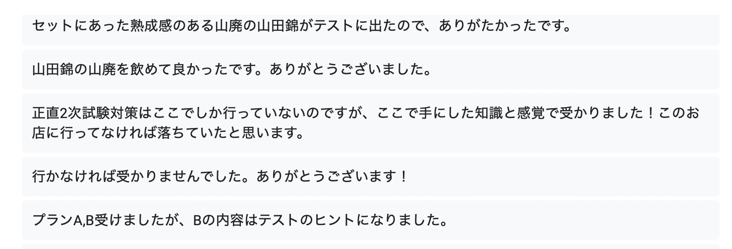 中には、『このお店に行かなければ受かりませんでした』と言ったありがたい意見も頂戴できました。