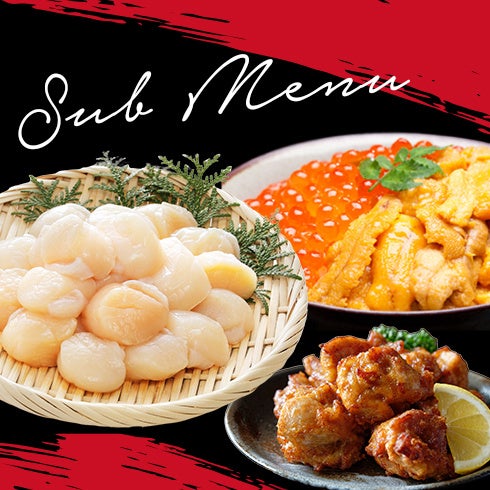 また、ラーメンだけでなく、北海道の特産品を活かした北海道ザンギや海鮮丼などのサブメニューも。さらに、産地直送の生うに、醤油漬けいくら、特大ホタテなどの北海道の特産品もお楽しみいただけます。