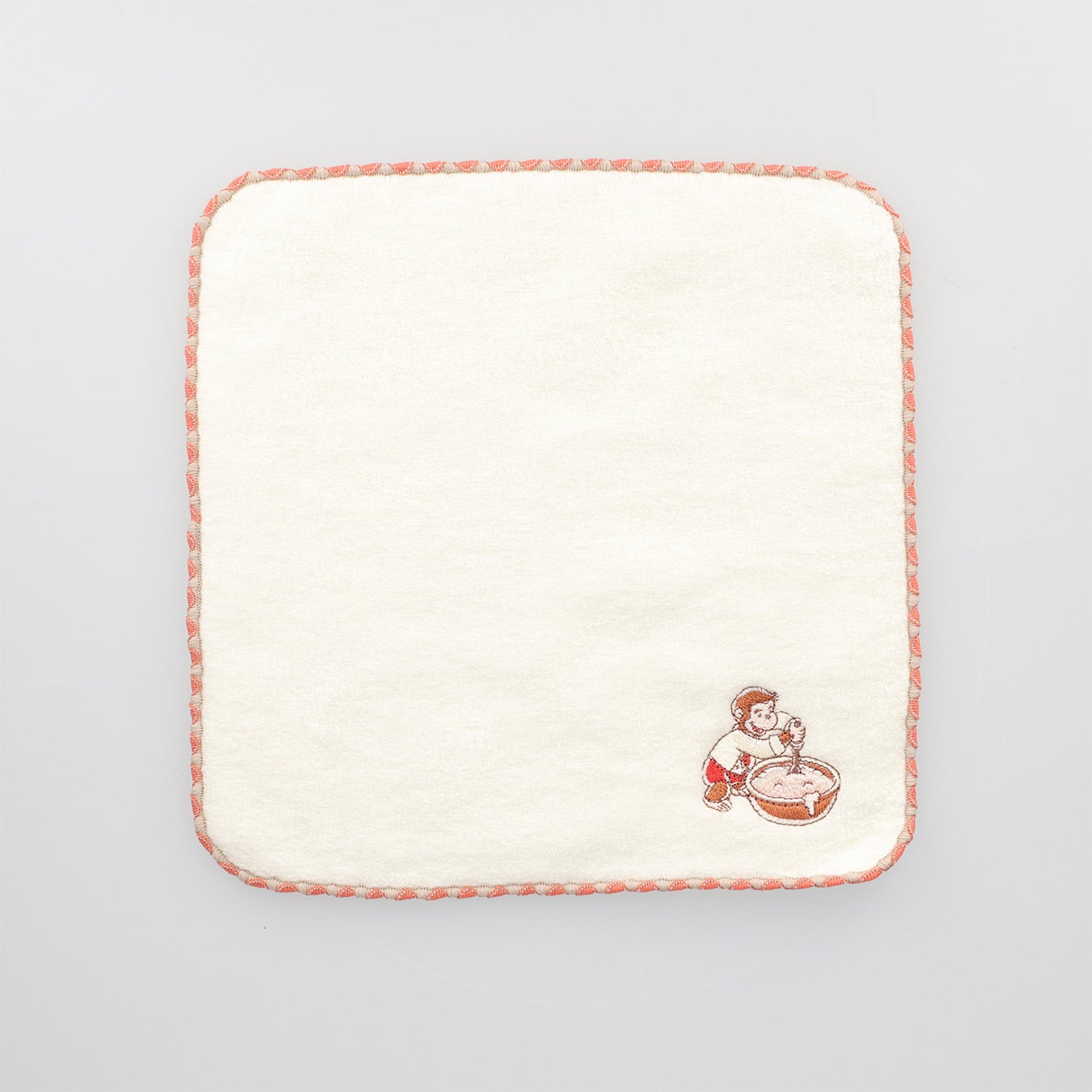 柔らかさと吸収性の高さが特徴の高品質な国産今治タオル。まーぜまぜお料理中のジョージのワンポイント刺しゅうがかわいらしいデザインです。