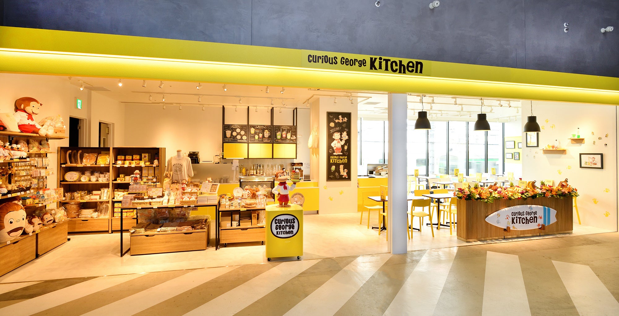 絵本やテレビ放送で大人気の作品「おさるのジョージ」のダイニングカフェ「Curious George Kitchen」(「おさるのジョージ」キッチン)は、心温まるコンセプトストーリーのもと、ジョージの好奇心が詰まったおいしい料理や、オリジナルグッズのお買い物がお楽しみいただけます。
