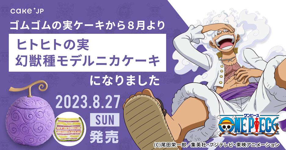8月6日放送のTVアニメ『ONE PIECE』1071話で「ゴムゴムの実」の実のもうひとつの名「ヒトヒトの実 幻獣種モデル”ニカ”」が判明しました。これを受け、商品名を「ヒトヒトの実 幻獣種モデル”ニカ”ケーキ」に変更し販売をしていくことを決定しました。