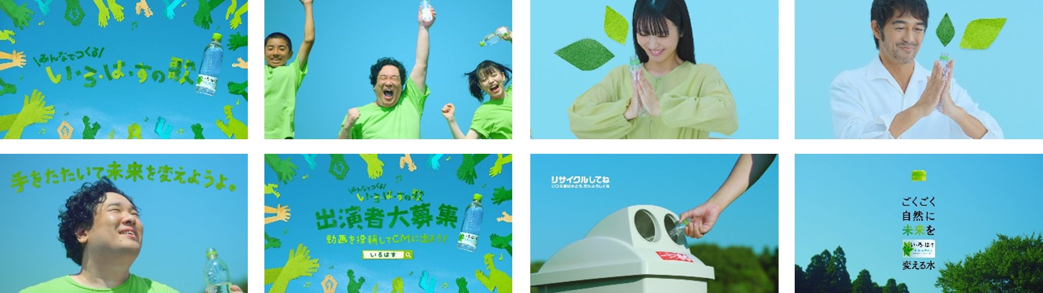 「い・ろ・は・す」は、2009年の誕生以来、「おいしい」と「環境にいい」を両立したブランドの在り方を探求しつづけ、「日本生まれの天然水を、おいしく飲み、しぼって(つぶして)、リサイクルする」という、簡単に楽しく参加できるサスティナブルアクションを提案してきました。2023年5月には、世の中の「エコ」や「環境配慮」に対する意識の変化を調査のうえ、自然体のサスティナブル志向が今後主流となる兆しを受け、ブランドテーマを「ごくごく自然に未来を変える水」へと進化させました。また、2022年12月にリニューアルを行った「い・ろ・は・す」のPETボトルは、従来の「しぼる」ボトルから容積が約2割小さくなる「たたむ」ボトルへと生まれ変わり、資源回収などのリサイクル工程をより効率的にしています。※