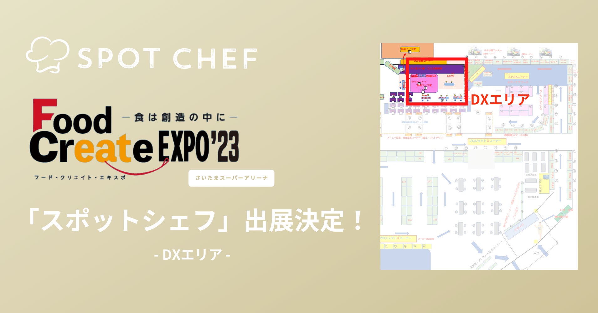 当社は「DX提案コーナー」エリアに出展し、ブース内にて7月にリリースした飲食事業者様向けの新事業「スポットシェフ」の紹介をします。
