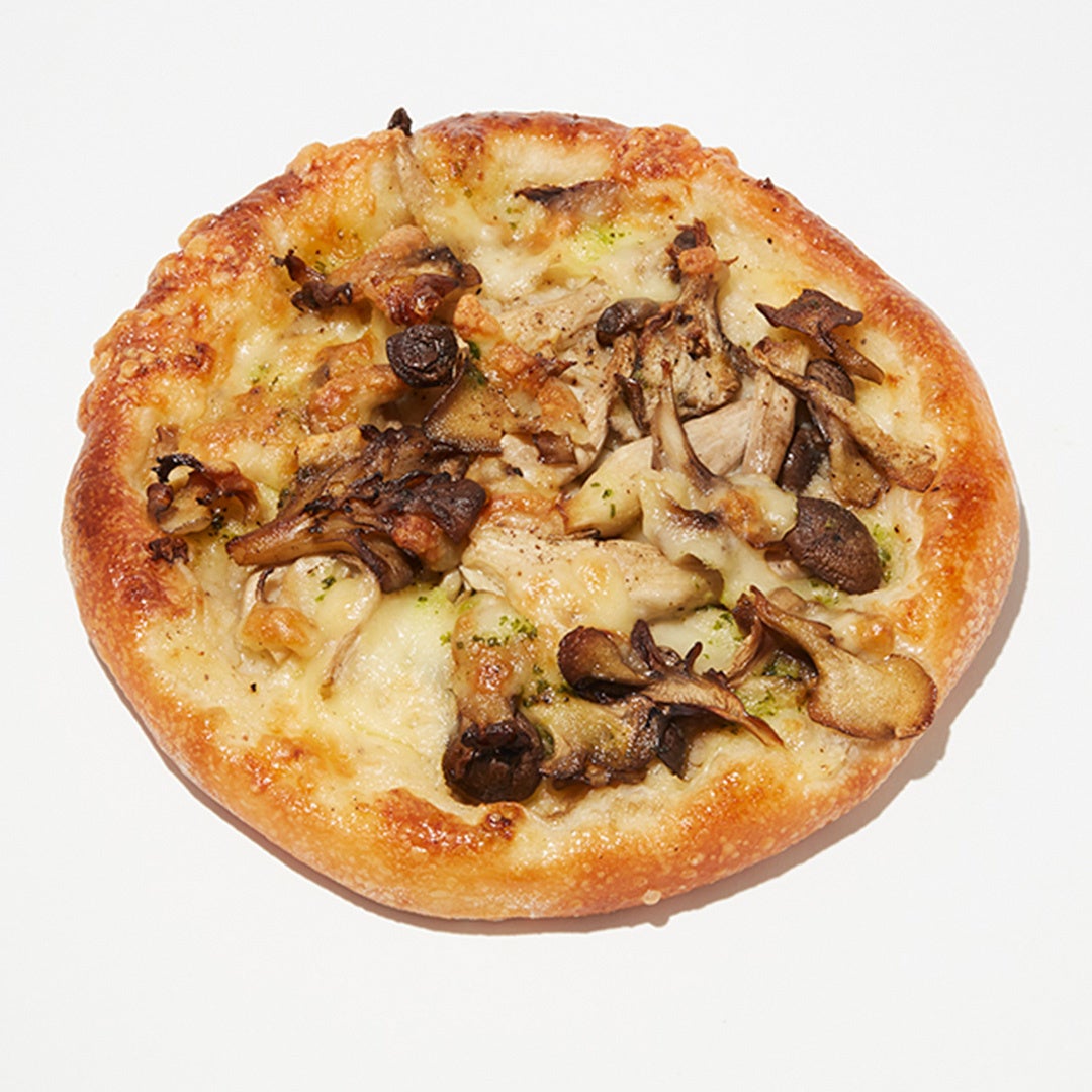 しめじ・舞茸・エリンギ・マッシュルームをトッピング。エスカルゴバターで仕上げました。