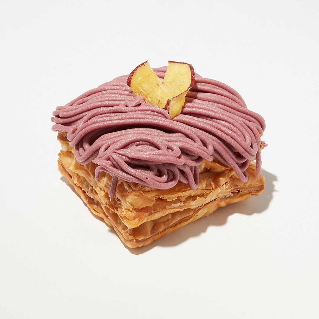 サクサクのパイ生地に、カスタードと特性の紅芋クリームで仕上げた秋の一品。