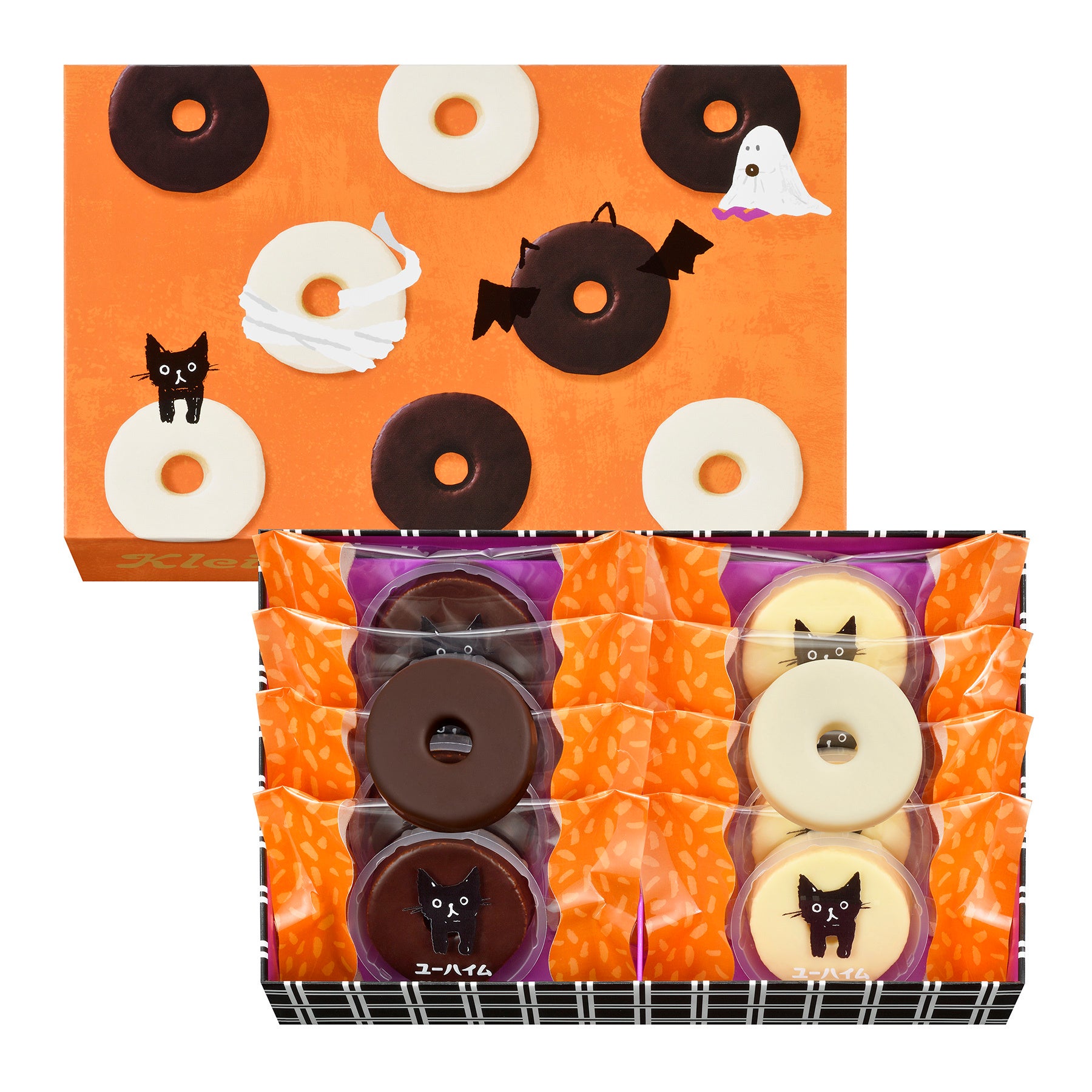 バウムクーヘンとビスケットをアソートした、バラエティ感のある商品。カラフルで賑やかなハロウィン限定パッケージがかわいらしく、秋の贈り物にもぴったりです。