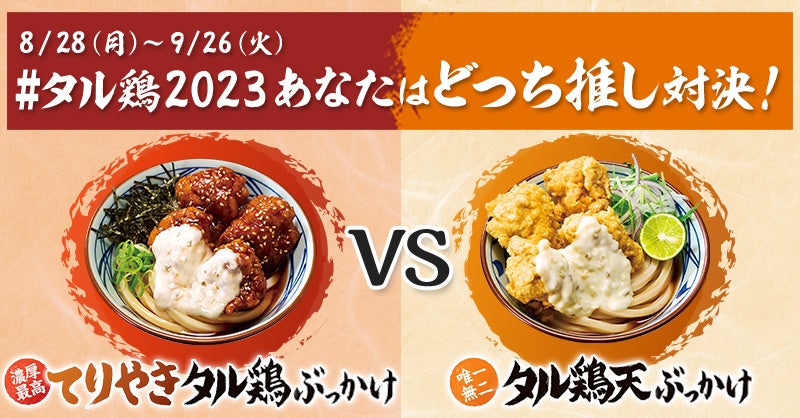 完全新作『てりやきタル鶏ぶっかけうどん』と、定番『タル鶏天ぶっかけうどん』の販売に伴い、「タル鶏2023 あなたはどっち推し対決!」キャンペーンを実施いたします。