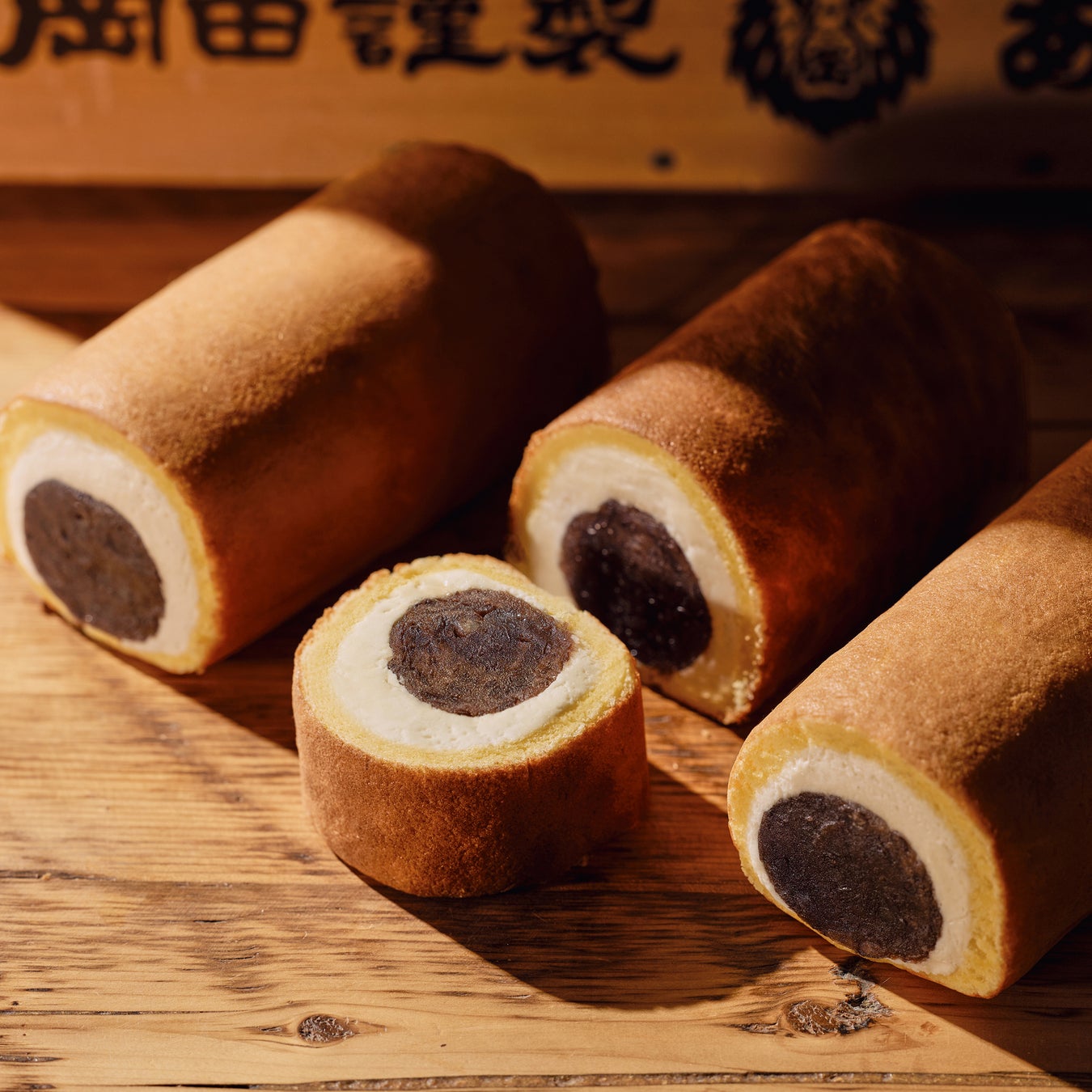 それはしっとりと仕立てたカステイラ風の生地で、岡田謹製「餡子」と塩味のきいたバタークリームを惜しげもない量を一本に包みあげた粋な逸品。
